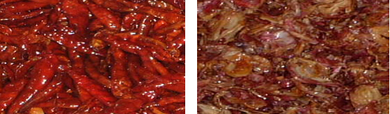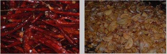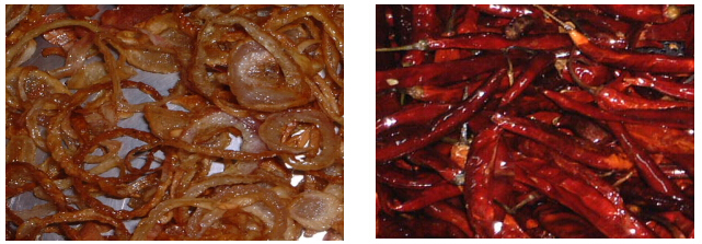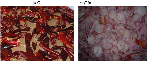 投入洋葱、辣椒、大蒜等蔬菜等,数秒钟后,浮出油面、排出油,通过传送带送出去