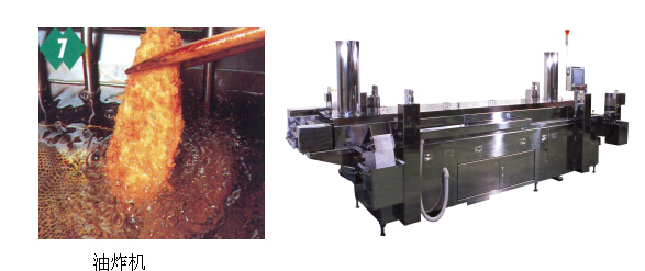 ·把裹面包糠的材料进行油炸,松软的炸猪排就加工出来了。
