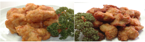 油炸鸡肉(裹面浆油炸) 炸鸡肉(粘面粉→油炸)