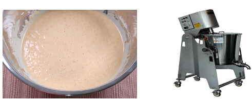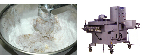 在油炸、炸鸡肉上粉,龙田上粉前的工序中使用,在鸡肉上均匀的挂浆。